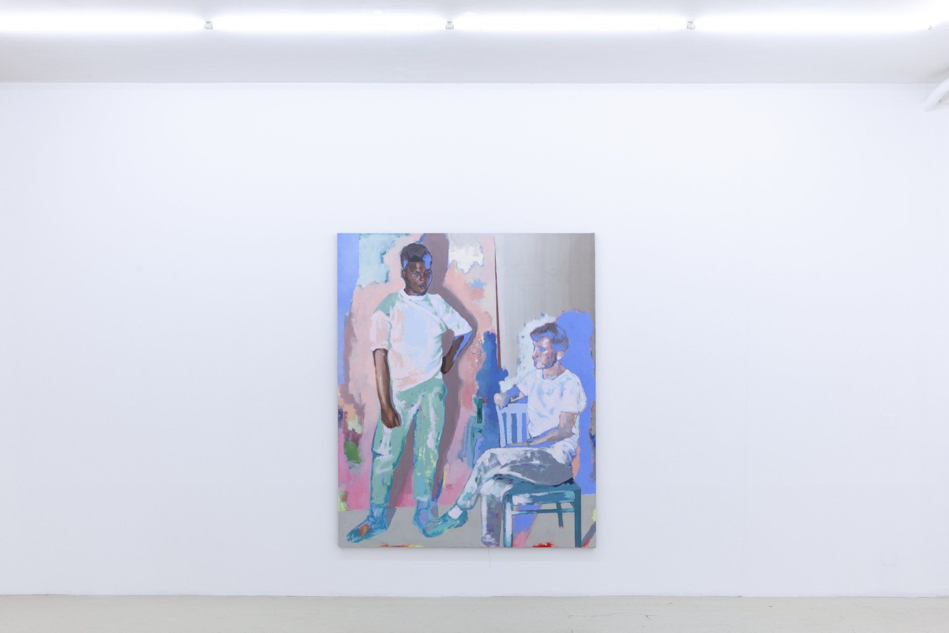 Simon Martin dresse sur la toile, la teneur de ce qu’il aime. Des personnes, des fleurs, le reste, partagent une pareille vigueur, cueillie en silence dans la qualification de toutes les couches qui la constituent, dont celles que l’on ne voit plus. Consumés par leur exposition prolongée, des corps demeurent sous le défilement des heures, gisant de préférence. Ces motifs de passivité irritent la précipitation, devenue le standard de nos flux. Ils imposent un impertinent répit, dans la fraîcheur bleue du matin, dans la douceur rose de l’après-midi. Alors sur notre rétine, chaque peinture décharge une impulsion électrique, selon une facture qui parvient à éterniser l’éblouissement. Jour et nuit.